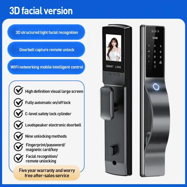 Unlock way : 3D face, fingerprint, card, key, password, applet, NFC. Support temporary password and virtual password